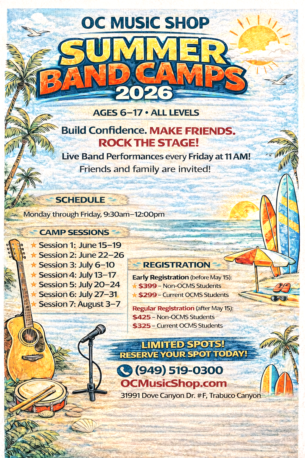 Current OC Music Shop students receive priority band placement as well as early access to registration before sessions fill.